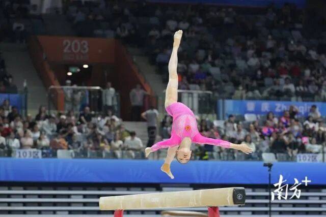 这不仅是柯沁沁个人在十五运会女子个人全能的“双料冠军”(青年组和成年组),还是广东体操队成年组首枚金牌。