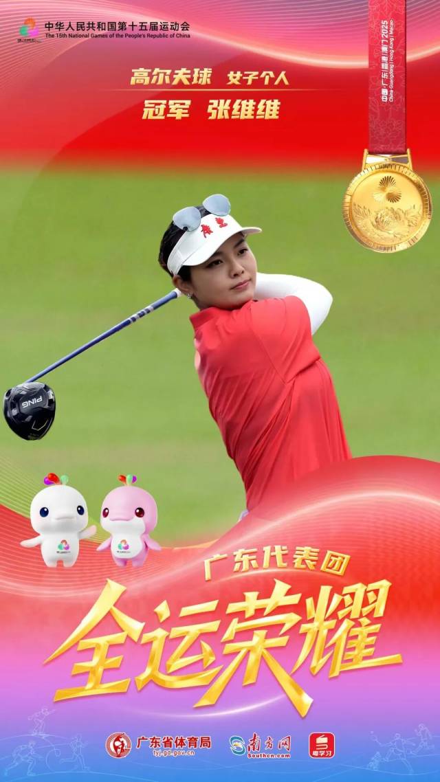 同时,她还和队友任玥、许赢、张雅惠一起为广东队赢得了高尔夫球女子团体金牌。
