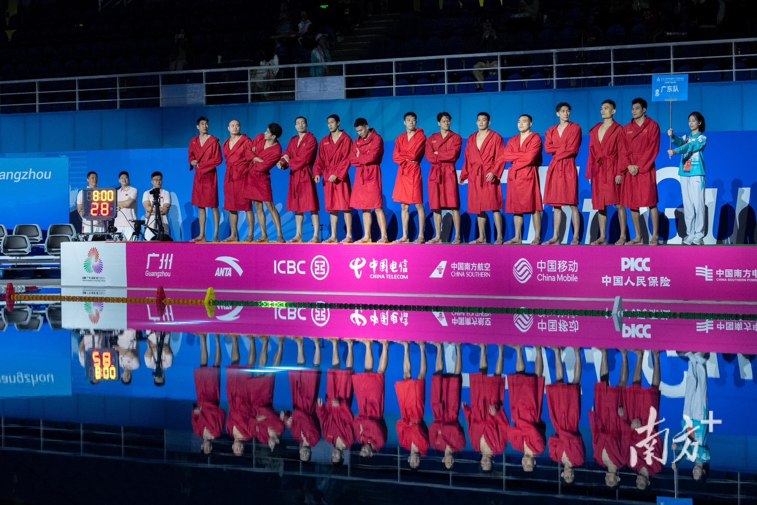10月22日,第十五届全国运动会水球男子组比赛在广东省奥体中心游泳跳水馆迎来首个比赛日。在B组小组赛中,卫冕冠军广东队首秀迎战四川队,最终以21比7获胜,取得“开门红”。