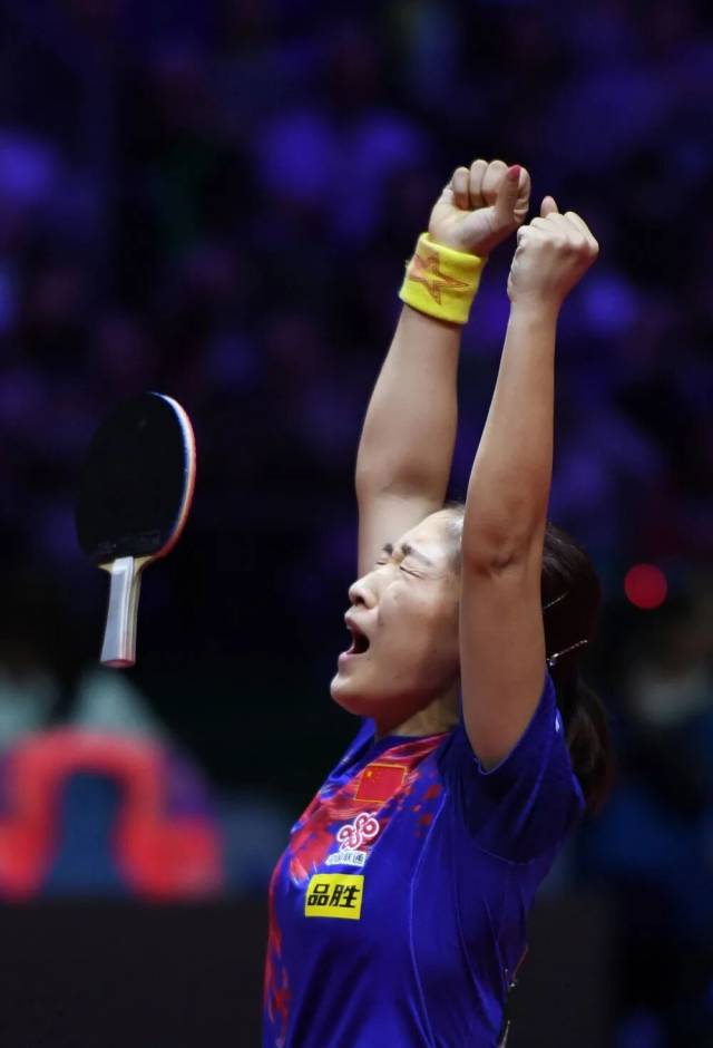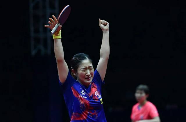 2019年4月27日,在匈牙利布达佩斯举行的2019世界乒乓球锦标赛女单决赛中,刘诗雯以4比2战胜队友陈梦后庆祝夺冠。图/新华社