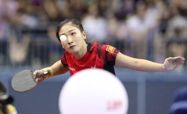 2009年9月30日,广东队选手刘诗雯在比赛中。当日,在山东青岛举行的第十一届全运会乒乓球女子单打第三轮比赛中,刘诗雯以4比0战胜山东队选手曹臻,晋级下一轮。图/新华社