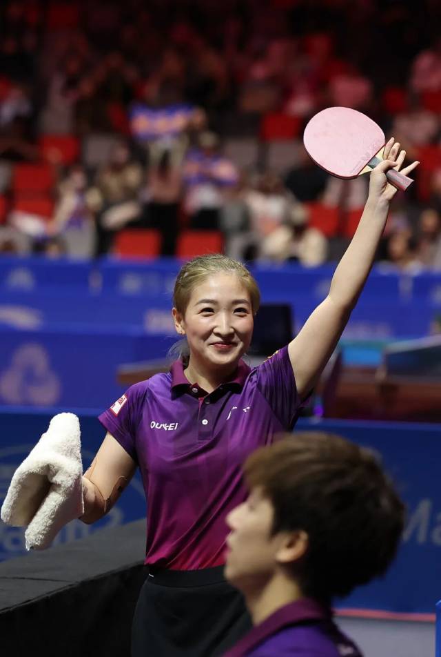 2025年11月14日,刘诗雯在第十五届全国运动会乒乓球混合双打决赛后。 图/新华社
