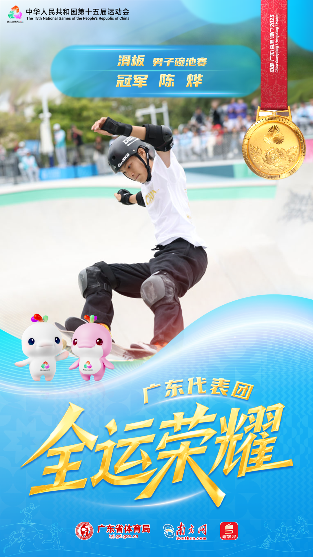 在男子碗池赛决赛中,选手们以精湛技艺诠释滑板运动的极限魅力。广东队陈烨稳扎稳打,凭借流畅的线路衔接、精准的动作控制与稳健的落地表现,最终以出色成绩斩获冠军。